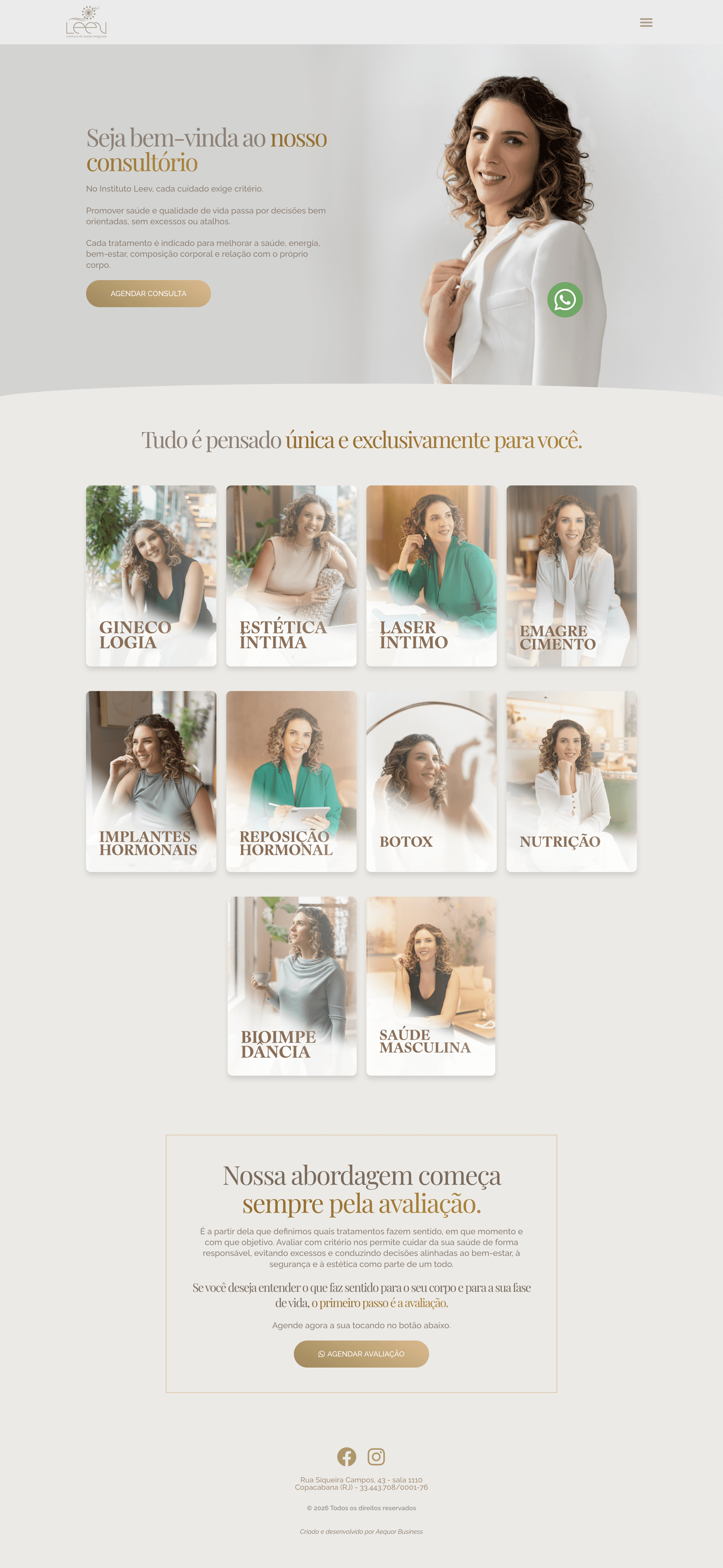 O Instituto Leev é uma clínica especializada em ginecologia endócrina, com foco no cuidado integral da saúde hormonal feminina. A home do site foi desenvolvida para apresentar o instituto, posicionar sua autoridade médica e comunicar uma proposta de cuidado baseada em investigação, acompanhamento contínuo e medicina de causa.